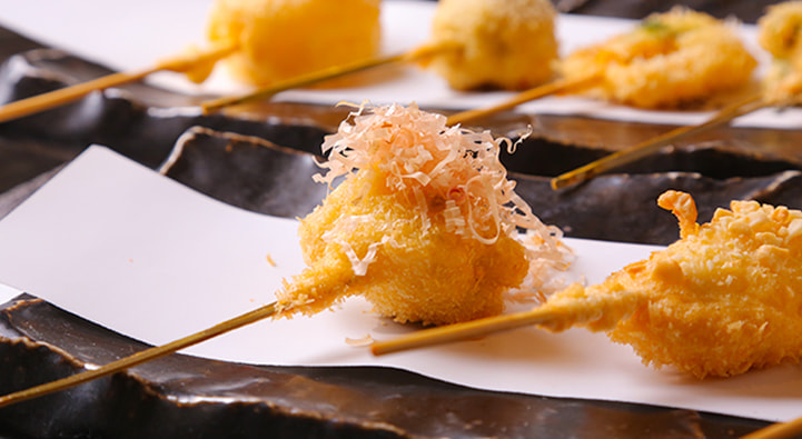 「ストップ」のお声がけをいただく迄、季節の創作串揚げや特選串揚げを順番に揚げていきます。